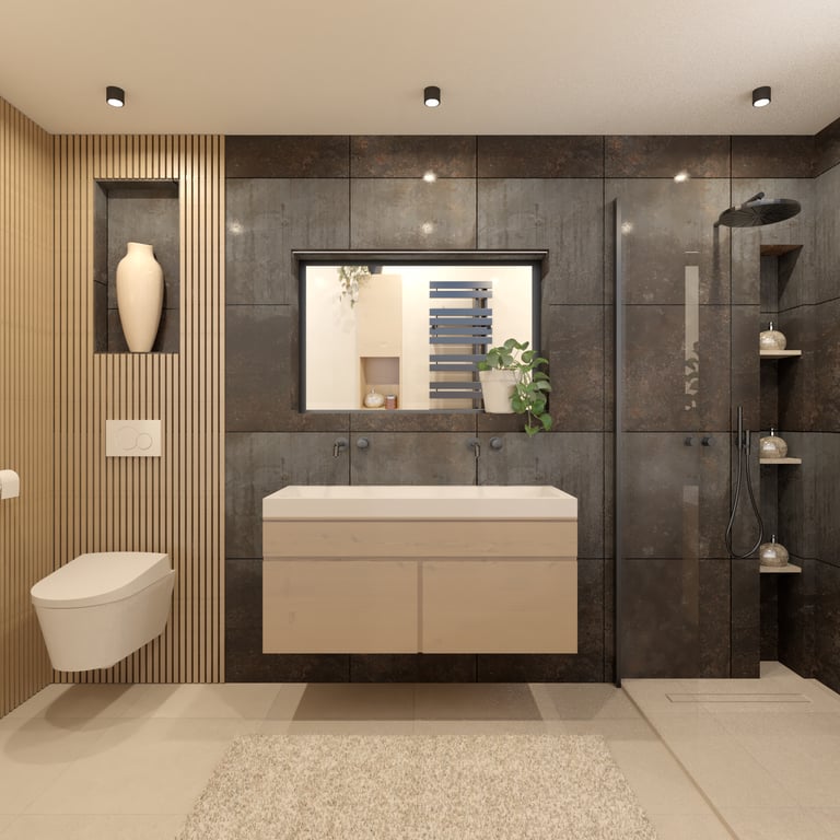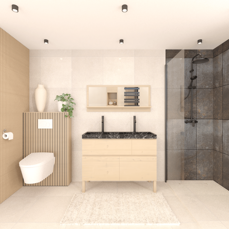 Notre client souhaitait être accompagné par notre équipe afin de moderniser la salle de bain de la suite parentale d’une magnifique villa dans l’arrière pays niçois. L’objectif était de les aider à se projeter dans leur future SDB grâce à nos rendus réalistes. Le tout accompagné d’un soutien décoratif et d’une shopping list adaptés aux besoins et goûts du client.