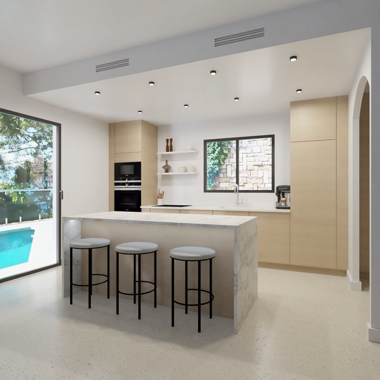 Après avoir acheté une ancienne maison niçoise, notre client souhaitait démolir la maison pour faire place à une toute nouvelle bâtisse, projet sur lequel nous l’avons accompagné de A à Z. Après avoir obtenu le permis de construire, nous avons pu nous pencher sur l’agencement intérieur et les rendus réalistes 3D, une manière pour le client de toucher, d’un peu plus prêt, à la maison de ses rêves !